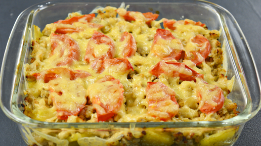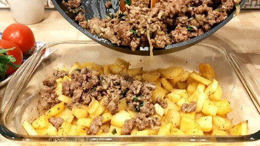 Картофель с фаршем, рецепт легкий и быстрый. Засыпаем в форму и в духовку на 30 минут