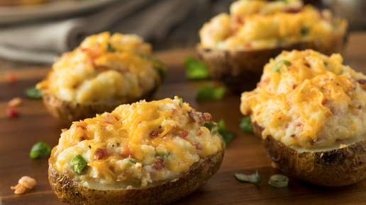 Запеченная картошка — любимое блюдо многих, которое готовится без особых хлопот. Картофель будет еще вкуснее, если добавить масло, сыр и зелень, нафаршировать мясом или рыбой. Кстати, запекание в фольге — лучший способ сохранить все витамины, которыми богата картошка. Картофель с беконом Нежный жирный бекон добавит картошке новый и неповторимый вкус. Ингредиенты: 6 картофелин среднего размера; 150 г бекона; свежемолотый черный перец; соль по вкусу. Приготовление: Картофель хорошо вымойте щеткой, почистите и нарежьте толстыми круглыми ломтиками...