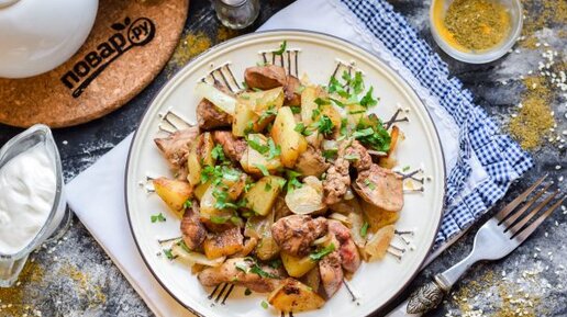 Самый вкусный жареные печень и картофель на сковороде рецепт