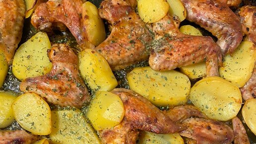 Крылышки с картошкой в духовке. Простой и сытный рецепт!