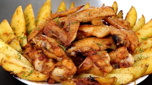 Куриные крылышки с картошкой в духовке — простой и вкусный ужин!