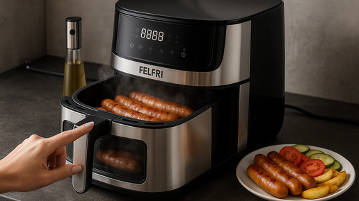 Часто купаты выходят сухими или лопаются, брызгая жиром по плите. В аэрогриле всё проще: чёткая температура, минимум масла — и сочная серединка с аппетитной корочкой. Ни дыма, ни суеты — ужин за 20 минут. Сразу к делу: если подбираете удобный помощник, обратите внимание на FELFRI FF-AF-06 (8 л) — керамическая чаша, мощность 2000 Вт, простая мойка и точный терморегулятор. Посмотреть аэрогриль FELFRI → Подходит: Не подойдёт: Советы по сочности