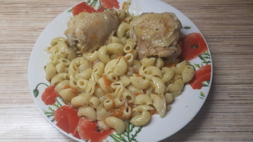 Всем привет! Когда, очень давно, одна моя знакомая поделилась со мной рецептом, при котором используется минимум посуды. И сегодня я хочу поделиться с вами этим рецептом. Так, что сейчас мы будем готовить курицу с макаронами. Но так можно приготовить не только курицу с макаронами, но многое другое. Как например - колбасу с рисом или гречку с печенкой. Для этого нам понадобится всего лишь одна сковородка. Плюс продукты. Из продуктов необходимых нам сегодня это: Куриные бедра 4 шт Макароны 200 гр Приправа любая 2 ч...