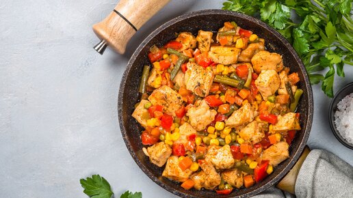 Диетическим, но сытным блюдом считается куриная грудка с овощами, рецепт можно приготовить в духовке или на сковородке. В первом случае продукты будут запекаться, во втором – тушиться! Для приготовления блюда можно использовать любые овощи. Отлично подойдут сезонные овощи. Именно в них находится большее количество питательных веществ. Куриная грудка содержит полноценный легко усвояемый белок, небольшое количество холестерина и жира. Поэтому она отлично подходит для диетического питания. Грудка прекрасно сочетается с различными гарнирами...
