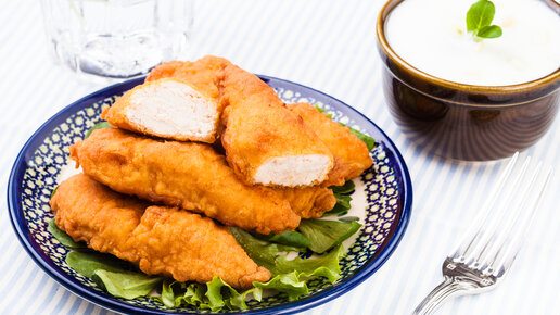 Куриные грудки в кляре — вкусное и не сложное блюдо, приготовленное из кусочков курицы, панированных и обжаренных на сковороде. Хрустящие снаружи и нежные внутри, их можно приготовить максимум за 30 минут: обмакнуть мясо в яйцо и панировочные сухари, повторить этот шаг и затем обжарить в горячем масле. При желании вы можете панировать их один раз, сначала обвалять в муке или использовать другую панировку, например кукурузную муку или кукурузные хлопья. Однако секрет идеальных куриных грудок в кляре кроется не только в панировке, но и в жарке...