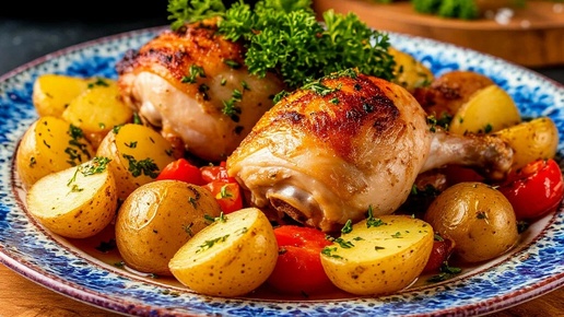Куриные бедра с картошкой и овощами — ужин «всё в одной форме» за 30 минут