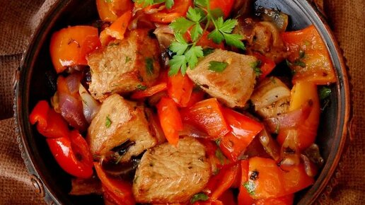 Мясо, тушеное с овощами на сковороде – простой рецепт с болгарским перцем