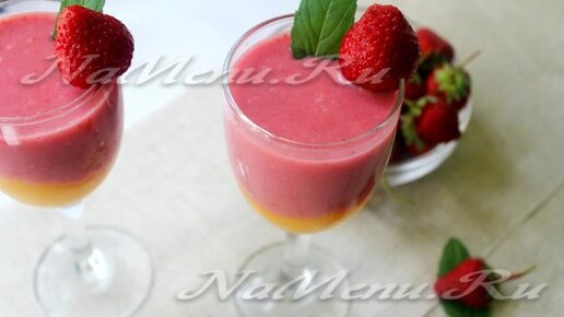 Этот восхитительный клубничный коктейль прекрасно освежает в летнюю жару...