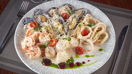 Морской коктейль — настоящая находка для любителей морепродуктов! В одной упаковке — ассорти из креветок, мидий, кальмаров и осьминогов. Предлагаем три простых и аппетитных рецепта, которые разнообразят ваше меню. Нежное блюдо с бархатистой текстурой и богатым вкусом. Идеально подойдёт для романтического ужина! При подаче можно добавить столовую ложку сливочного масла и немного лимонного сока для свежести. Время приготовления: 15 минут. Подача: с гарниром из риса или свежим багетом...