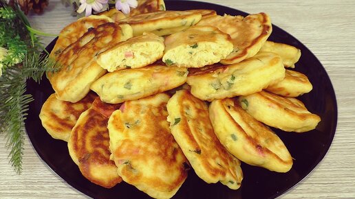 Быстрые ленивые оладьи или даже пирожки, у меня, с колбасой и зелёным луком. Наполнение может быть любым, по Вашему вкусу, что есть (подходящее) в холодильнике-то и кладите. Готовится быстро, а в качестве перекуса получается вкусно и сытно. Если сковорода с хорошим покрытием, жарить можно без масла. Я всегда использую 500 мл. кефира для рецепта, количество ингредиентов, по желанию, можно сократить или увеличить. Рецепт: Кефир 500 мл. Вода 60 мл. Яйца 2 шт. Сахар 2 ч. л. Соль 1 ч. л. Растительное масло 2-3 ст...