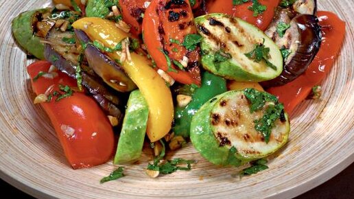 Сейчас как раз сезон летних овощей, поэтому надо готовить их как можно больше. Мы готовим всевозможные рагу, стоте, икру и запеканки. А теперь я хочу вас научить, как приготовить вкусные овощи на гриле. Их можно готовить как на пикнике или даче, так и дома в духовке или в микроволновке. Они служат отличным гарниром к мясу или же к запеченной картошке, и хорошо как в горячем, так и в холодном виде. Итак, готовим вкусные овощи на гриле. Овощи можно взять какие у вас найдутся в холодильнике. Я обычно готовлю баклажаны, кабачки, болгарский перец, еще можно взять помидоры, лук...