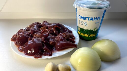 Простой рецепт пп обеда, куриная печень в сметане.