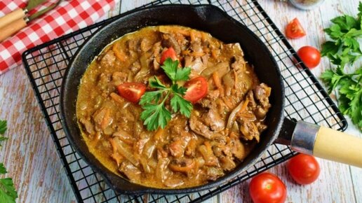30 минут на кухне: куриная печень с ароматной подливой и луком на сковороде