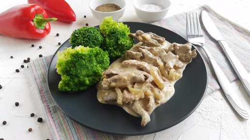 Печень По - Строгановски или Печёнка в сметане - Рецепт нежной и мягкой печени