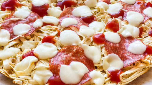 Все обожают пиццу! Моя семья-не исключение. Я нашла способ быстро и вкусно ее приготовить. Не замешивая тесто, не включая духовку. Получается всегда отлично! Для пиццы нам понадобится: Нарезаем лаваш на ленты! Ленты, кстати, сами по себе вкусные. Яйцо смешать с молоком. Тесто получится нежнее. Добавить соль, перец по вкусу. Можно добавить специи, сушеные травы. Я не добавляю, прекрасно и без них. Яичную смесь добавить к лапше из лаваша и все перемешать. Нужно мешать до такой степени, чтобы весь лаваш пропитался...