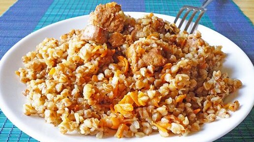 Гречневый плов с куриным мясом Ингредиенты: 1 шт. куриного филе без кожи, 1 средняя репчатая луковица, 1 ярко-оранжевая морковка, чуть меньше 1 ч.л. крупной соли, 1 полный без верха стакан гречневой крупы, 1 и 2/3 ст. воды, масло растительное или оливковое.