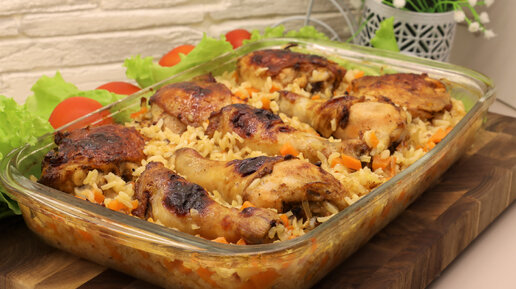Рассыпчатый рис с ароматной курочкой в духовке. Вкусный ужин для большой семьи, не хуже плова