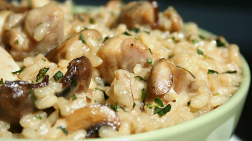 Рис с грибами Рис с грибами Вкусный ароматный рис с курицей и грибами понравится всем членам семьи. Ингредиенты Рис Арборио150 г Куриное филе250 г Грибы200 г Лук1 шт. Сливочное масло30 г Оливковое масло2 ст. л. Соль1 ч. л. Перец черный молотый2 г Процесс приготовления Шампиньоны промыть под проточной холодной водой, смывая очень тщательно остатки мусора и земли. Грибы обсушить и произвольно нарезать. Обжарить до готовности нарезанные грибы на сильном огне. Немного подсолить. Рис с грибами Для приготовления ризотто лучше взять глубокую сковороду или сотейник с толстым дном...