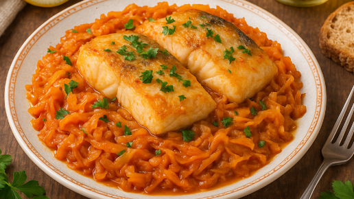 Сегодня на канале «Рецепты от Дарики» хочу поделиться с вами рецептом, который объединяет нежный вкус рыбы и ароматную тушёную капусту. Это блюдо получается очень гармоничным: сочная рыба, пропитанная лёгкими овощными нотками, и мягкая, слегка сладковатая капуста, которая служит идеальным гарниром. Рыба с тушёной капустой — отличный вариант для тех, кто хочет приготовить полезное, питательное и в то же время несложное блюдо для всей семьи. Я часто готовлю этот рецепт, когда хочется совместить белок и овощи в одном блюде, а времени на готовку немного...