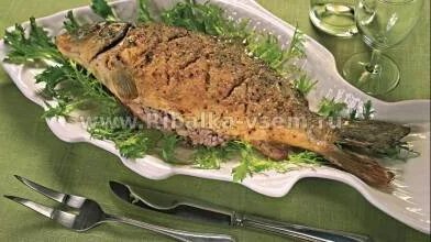Сазан в духовке Подготовка сазана для запекания в духовке Сазан — лучшая рыба для большого застолья. Он может достигать 20 килограммов, а значит, найти достаточно крупный экземпляр, которого хватит, чтобы накормить всех гостей, будет несложно. Мяса в сазане очень много, а костей — мало, и готовить его очень легко. Возьмем рыбу примерно в 2-2,5 килограмма весом — она легко поместится в стандартную духовку. В этом рецепте сазана, запеченного в духовке, нам нужна рыба целиком, с головой и хвостом....
