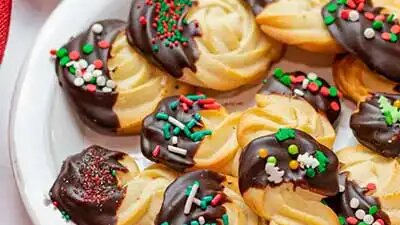 Это сдобное печенье не только легко приготовить, но и на это уйдёт всего двадцать минут, а для приготовления печенья потребуется всего шесть ингредиентов. Обваливается в шоколаде и украшается цветной посыпкой. Обязательно попробуйте приготовить это вкусное и нежное печенье. Вот рецепт сдобного печенья. Для приготовления нам будут нужны вот эти продукты: