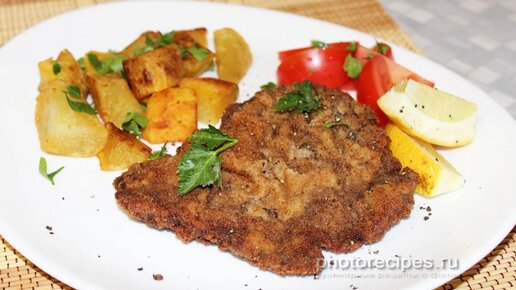 Есть у меня вот такой вот полезный рецепт приготовления шницеля из говядины. Блюдо готовится в сковороде, а не в духовом шкафу. Заранее мясо нужно отбить и запанировать. Блюдо это, можно с полной уверенностью еще назвать «венским шницелем», поскольку, по сути – это он и есть. Как гарнир подается картошка, но можно использовать и другие варианты. Продукты: Шницель рецепт с фото Как, наверное, Вы уже поняли, в этой статье речь пойдет о приготовлении шницеля из мраморной говядины (я брал отруб производителя «Мираторг»)...