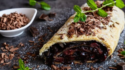 Штрудель с яблоками из слоеного теста | Простой и быстрый рецепт!