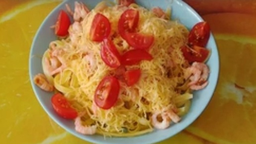 Рецепт: Спагетти с креветками и томатами черри в сливочном соусе. Ингредиенты: - Спагетти — 400 г - Креветки — 500 г - Сыр пармезан — 100 г - Сливки ( жирность 20–30%) 100 г - Томаты черри — 200 г - Лимонный сок — 1 ст. л. - Оливковое масло — 3 ст. л. - Чеснок — 2 зубчика - Соль — по вкусу - Чёрный молотый перец — по вкусу Приготовление: 1. Отварите спагетти в кипящей подсоленной воде. 2. В это время на сковороде разогрейте оливковое масло и обжарьте очищенные креветки с чесноком. Готовьте несколько минут, пока чеснок не станет золотистым...