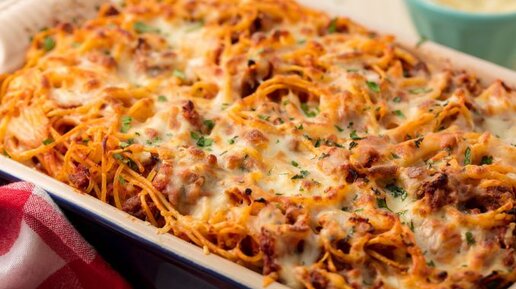 Запеченные в духовке спагетти имеют все шансы одержать победу в номинации «оригинальное блюдо из макарон». Их можно приготовить на обед или ужин. Варьируя дополнительные ингредиенты, получится как сытное, так и легкое блюдо. Просто и необычно Когда обычные спагетти совсем приелись, пришло время приготовить их в духовке. Добавьте куриное мясо, томатный сок, любимые специи – и у вас получится оригинальное блюдо, чем-то похожее на запеканку. Оно даже сможет претендовать на звание «ленивого», ведь ничего предварительно обжаривать не придется...