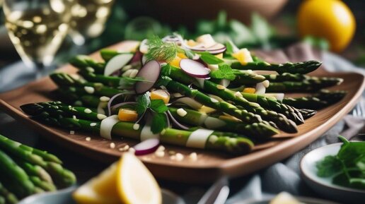 Салат из спаржи в домашних условиях: Легкий и аппетитный Признайтесь, у вас тоже иногда возникает желание съесть что-нибудь легкое и полезное, но при этом невероятно вкусное? Тогда салат из спаржи - это именно то, что вам нужно! Это блюдо порадует вас не только своим свежим весенним вкусом, но и простотой приготовления. Спаржа - настоящий кладезь витаминов и минералов. Она богата фолиевой кислотой, калием, магнием и клетчаткой, что делает ее идеальным продуктом для поддержания здоровья и красоты...