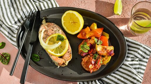Сочный стейк кижуча в духовке, пошаговый рецепт с фото на 811 ккал