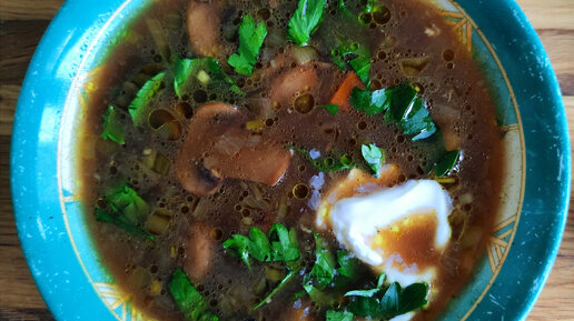 Как известно, шампиньоны- это грибы без ярко выраженного вкуса и аромата. Поэтому, чтобы суп получился вкусным, с насыщенным грибным вкусом и ароматом, можно применить хитрость- добавив к шампиньонам небольшое количество сухих белых грибов. Такой хитростью часто пользуются в ресторанах, когда подают грибной крем-суп- в его пюреобразной консистенции ни за что не догадаешься, что основной ингредиент тут- шампиньоны. Настолько яркий вкус и аромат у белых сушёных грибов, что достаточно добавить небольшое количество и уже кажется, что ешь крем-суп из белых грибов...