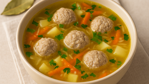 Сегодня я расскажу, как приготовить классический суп с фрикадельками дома — без кулинарных премудростей, но с секретами, которые делают вкус по-настоящему насыщенным. Для 4 порций (кастрюля 2,5–3 литра): Для фрикаделек: Для супа: Когда суп готов, выключите плиту и дайте ему настояться под крышкой 10 минут. Подавайте с нарезанной зеленью — она придаёт свежесть и лёгкий аромат. Домашний суп с фрикадельками — это тот случай, когда минимум усилий даёт максимум удовольствия...