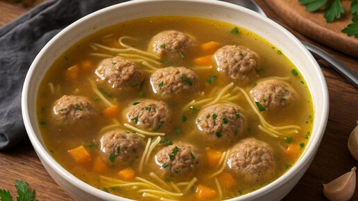Ароматный,нежный и такой уютный суп с фрикадельками — это идеальное первое блюдо для всей семьи. Его обожают и дети, и взрослые. Если вы хотите приготовить по-настоящему вкусный, прозрачный и легкий суп, который напомнит о детстве, этот рецепт для вас. Мы расскажем, как сделать фрикадельки, которые не разварятся, и сварить идеальный бульон. Готовьте с нами — всё получится с первого раза! · Нежность: Фрикадельки из качественного фарша делают суп сытным, но легким. · Универсальность: Блюдо подходит для детского и диетического питания...