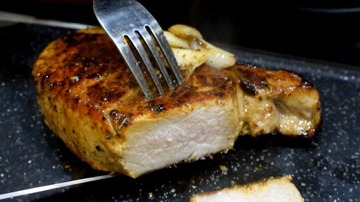 Сочный стейк из свинной корейки на сковороде