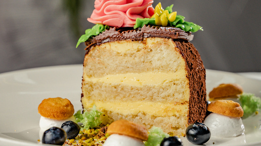 Торт "Сказка" — классический советский десерт, знакомый по кондитерским витринам 1960–1970-х годов. В рецепте шеф-кондитера ресторана "Восход" Ольги Рыбаковой сохранены классические пропорции и технология приготовления. Воздушный бисквит, заварной крем на сливочном масле и пропитка с коньяком дают тот самый узнаваемый с детства вкус...