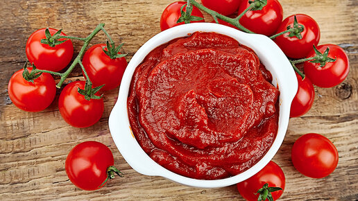 Разве сравнишь магазинную томатную пасту с той, что приготовлена дома, своими руками, из спелых и натуральных помидоров?  Это концентрация томатного вкуса, который еще называют – умами. Здесь он особенно яркий, ведь жидкость для томатной пасты выпаривается максимально, концентрация в ней сухих веществ от 25% до 40%, в то время, как в томатном пюре всего 12-20%...