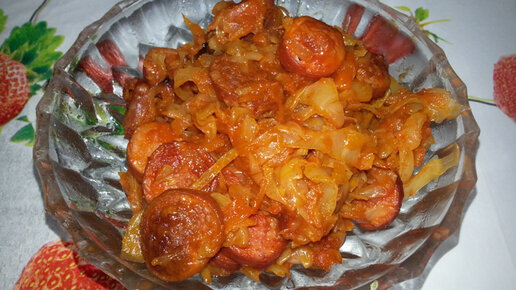 Тушеная капуста с сосисками – это объедение!