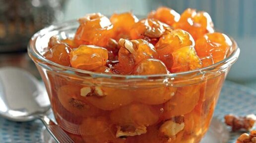 Здравствуйте, дорогие друзья! С вами Надежда! Варенье царское - так называли варенье из крыжовника с грецкими орехами. Его очень любила императрица Екатерина II или Великая. За это варенье она подарила кухарке изумрудное кольцо, после чего варенье стали называть изумрудное. Рецепт варенья очень простой и ингредиентов понадобится немного, но получается вкусно и полезно, потому что оно содержит много полезных элементов, которые укрепляют иммунитет и питают организм...