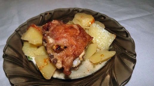 Куриная голень, запеченная в духовке с картофелем невероятно сочная и вкусная. Добавьте данный рецепт в вашу копилку рецептов и удивите гостей. Состав: куриная голень - 13-15 штук, картофель - 8 штук, репчатый лук - 2 штуки, чеснок - 10 зубчиков, майонез 200-250 грамм, вода очищенная - 30-50 грамм, соль, перец, пряности - по вкусу. Приготовление: Куриные голени промываем, очищаем при необходимости от лишних пленок, обсмаливаем слегка над огнем, промываем еще раз и обсушиваем бумажным полотенцем...