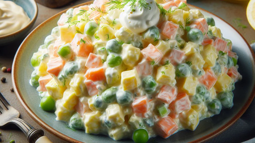Салат Оливье — это классическое русское блюдо, которое можно приготовить быстро и просто. Вот самый простой и вкусный рецепт. Ингредиенты: