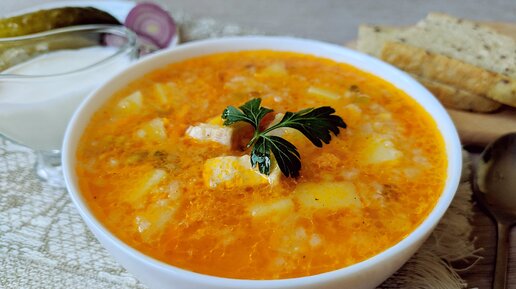 Ароматный рассольник с легкой кислинкой – один из всеми любимых супов. Это сытное первое блюдо накормит всю семью, а рецепт обязательно войдет в список лучших. Рис является отличной альтернативой перловке, варится он намного быстрее, а вкус готового супа получается не менее вкусным. Ингредиенты: Этапы приготовления: 1. Приготовьте необходимые ингредиенты. Рассольник можно приготовить на любом бульоне, поэтому вместо курицы можно использовать любое другое мясо на свое усмотрение. Томатную пасту можно заменить кетчупом без ярко выраженного вкуса...