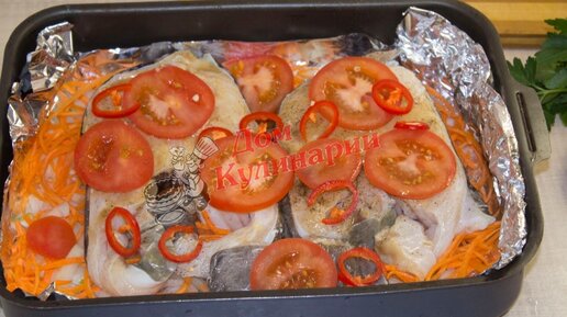 Вкуснятина из рыбы в духовке: Стейк зубатки с сыром и помидорами