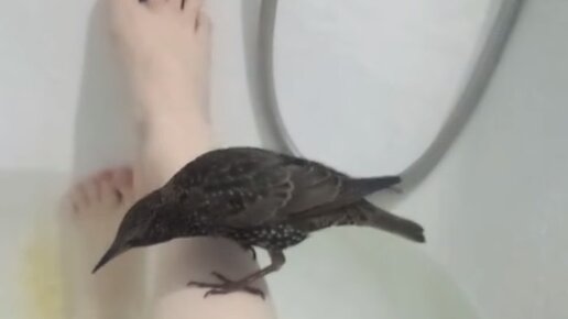 Всегда вместе: сибирячка приручила скворца и теперь не расстается с ней даже в ванной