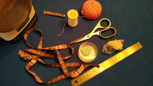 Для изготовления вешалки нам понадобится: декоративная тесьма, линейка, ножницы, нитка с иголкой, мел для разметки, клеевой флизелин* двухсторонний (паутинка) и утюг. * Клеевой флизелин - это полупрозрачная лента, на которой клеевое покрытие нанесено с обеих сторон. Клеевой паутинкой удобно пользоваться для закрепления подгибки низа изделия, с ее помощью можно прикрепить клеевую прокладку большей плотности, аппликацию или заплату. Итак, приступим к изготовлению быстрой вешалки, без распарывания изделия...