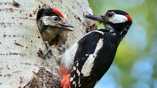 Дятлы - это строительные рабочие птичьего мира. Когда другие виды птиц плетут гнёзда из травы и веток, дятлы делают дыры в очень твёрдых породах деревьев. Они делают в полостях свои гнёзда и ищут добычу, которая живёт под корой. Не смотря на трудный и опасный способ постройки жилища, им не опасны щепки летящие в глаза, или куски деревьев, которые могут ударить по голове...