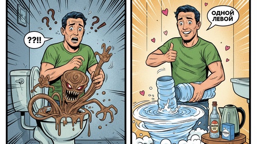 ОДНОЙ ЛЕВОЙ Как пробить засор в унитазе без вантуза Представьте себе. Вы спускаете воду, а она не уходит или, что еще хуже, поднимается. Случился засор! Вантуза или специального троса нет, вызывать сантехника долго, дорого и неловко. Возникает паника, ведь унитаз — самый важный прибор в доме, и его нужно срочно восстановить. Но это не проблема, которую нельзя решить. В большинстве случаев засор в унитазе (если это не строительный мусор) можно устранить, используя простые физические или химические методы...