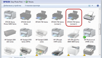 В случае длительного простоя принтера Epson, картриджи могут засохнуть, и принтер перестаёт качественно печатать. Если это произошло, необходимо прочистить печатающую головку картриджа с помощью утилиты, которая прилагается к драйверам. Если это не помогло (а это бывает при полном засыхании картриджей), Вам следует обратиться в нашу компанию для профессионального восстановления Ваших картриджей. Итак, находим в пуск (для Windows 7) → Панель управления → Оборудование и звук →Устройство и принтеры Здесь находим нужный нам принтер...