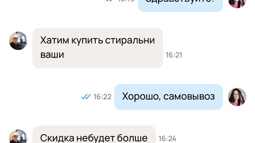 Конечно же сообщения, которые мне начали писать. Ну как я решила продать, родители купили новую стиральную машину, а старую мы с мужем подумали выставить на Авито. Поставили практически за минимальную цену, потому что все-таки это б/у, ну и пользовались машинкой довольно долго. Она в хорошем состоянии, но при перегрузе вещей ее начинает трясти. Все это я написала в объявлении, я же честный продавец. Просмотров сразу было много, я даже удивилась, потому что перед тем, как ставить цену я посмотрела...