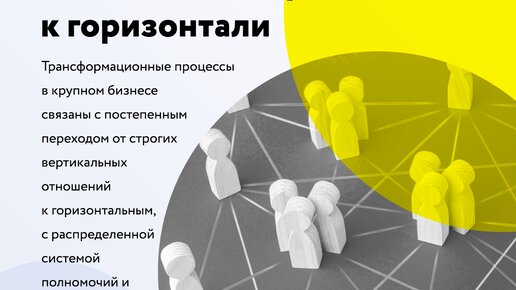 Трансформационные процессы в крупном бизнесе связаны с постепенным переходом от строгих вертикальных отношений к горизонтальным, с распределенной системой полномочий. И изменение культуры компаний, происходящее в рамках цифровой трансформации, обязательно должно начинаться с изменения культуры топ-менеджмента. Только после этого вы сможете изменить культуру всей компании. При этом большинство корпораций совершают стандартную ошибку: они начинают работать с культурой всей компании, не изменив топ-менеджмент...